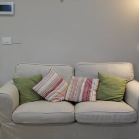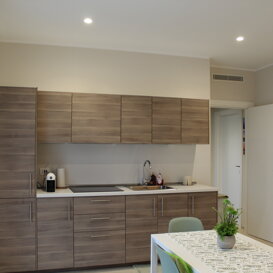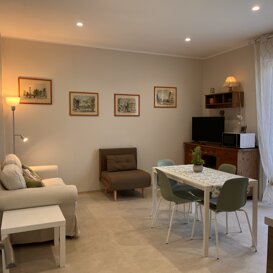 - ingresso indipendente in cucina/soggiorno con divano due posti e un divano letto singolo, una tv da 40 pollici, forno a microonde, macchina da caffè, cucina dotata di tutto il necessario, con piano cottura ad induzione e frigo, un balcone vista giardino, attrezzato con tavolo e sedie.